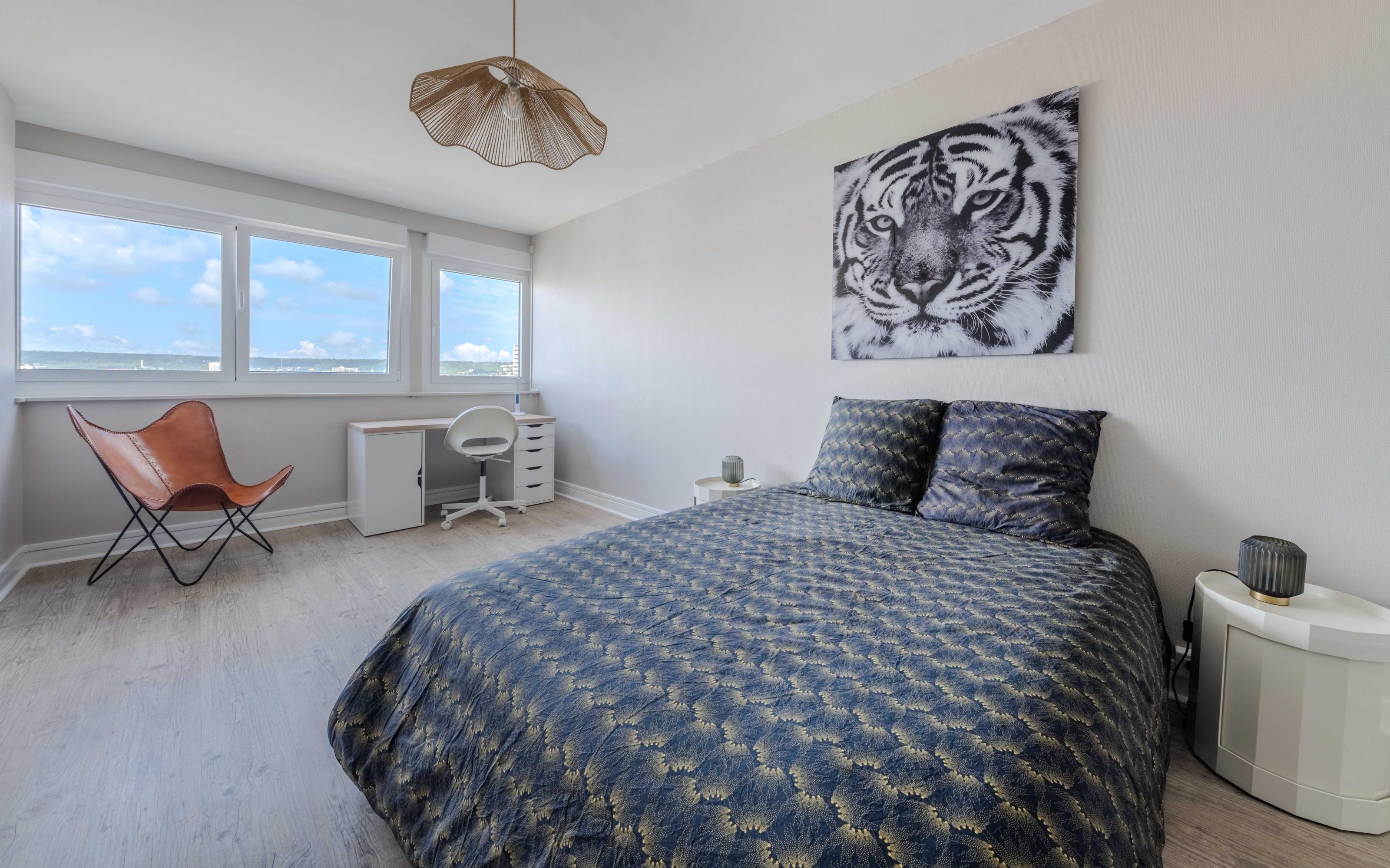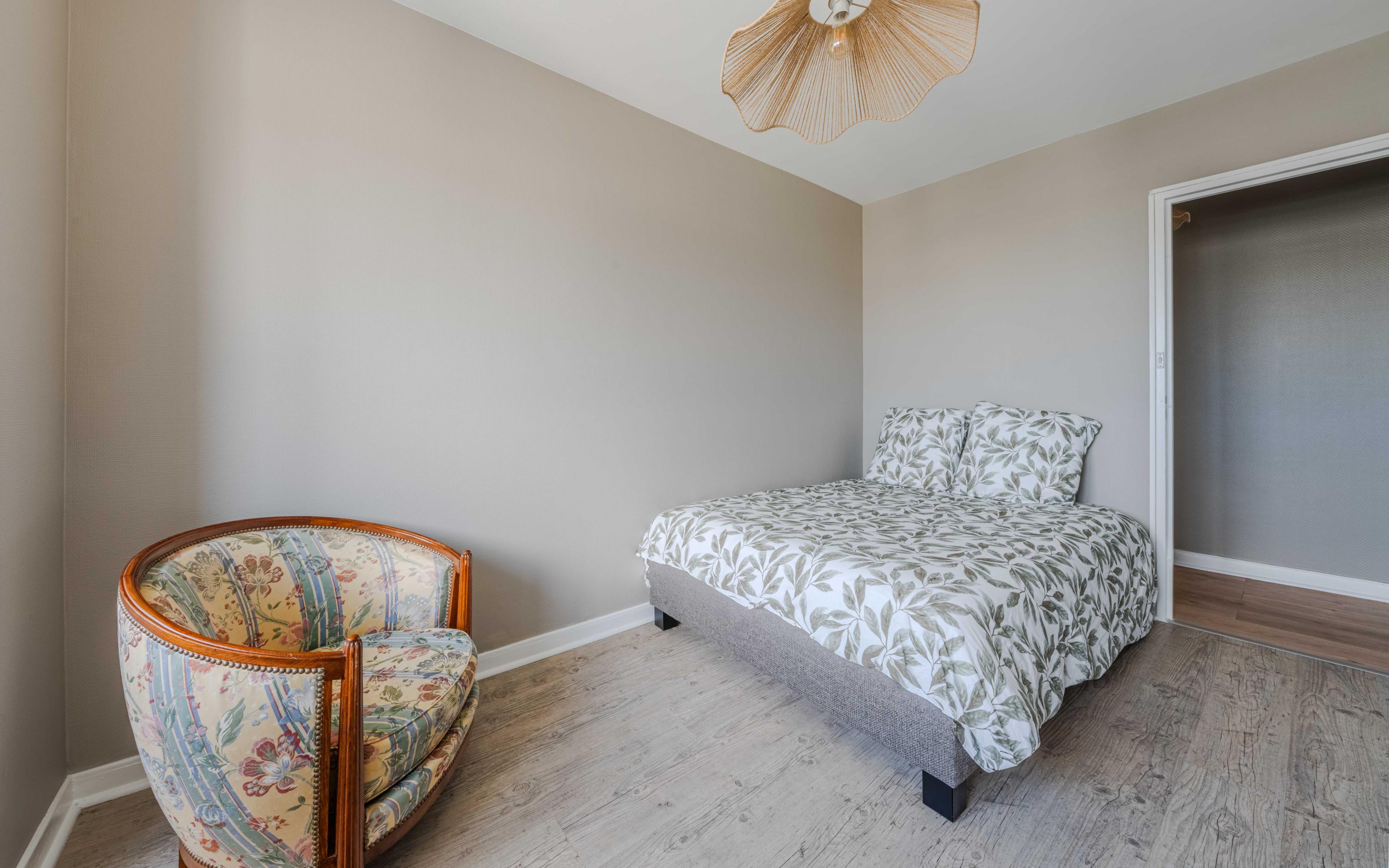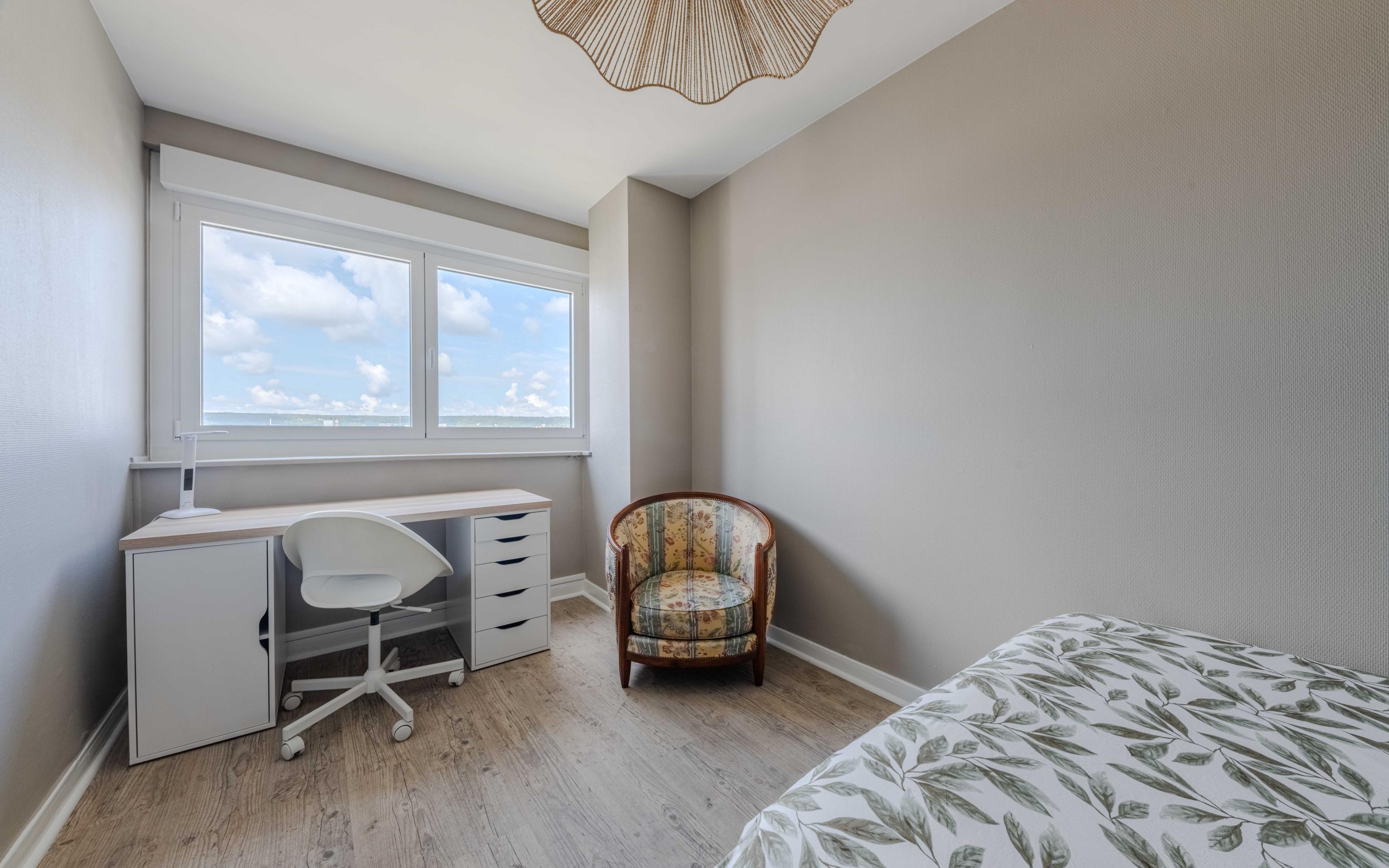 - 1 chambre spacieuse : Cette chambre est équipée d'un lit double, d'une grande armoire et d'un bureau, offrant un espace idéal pour se reposer et travailler.