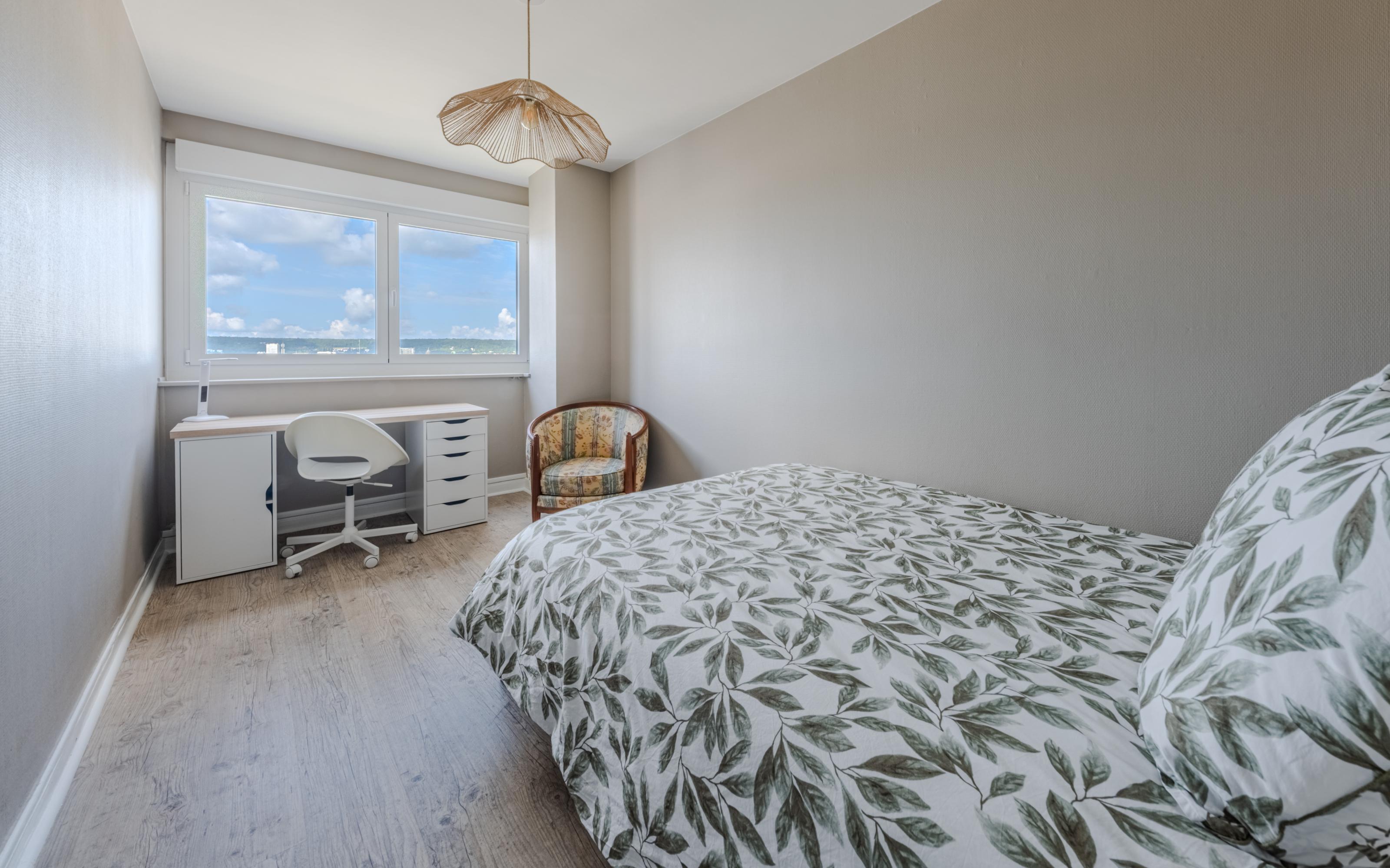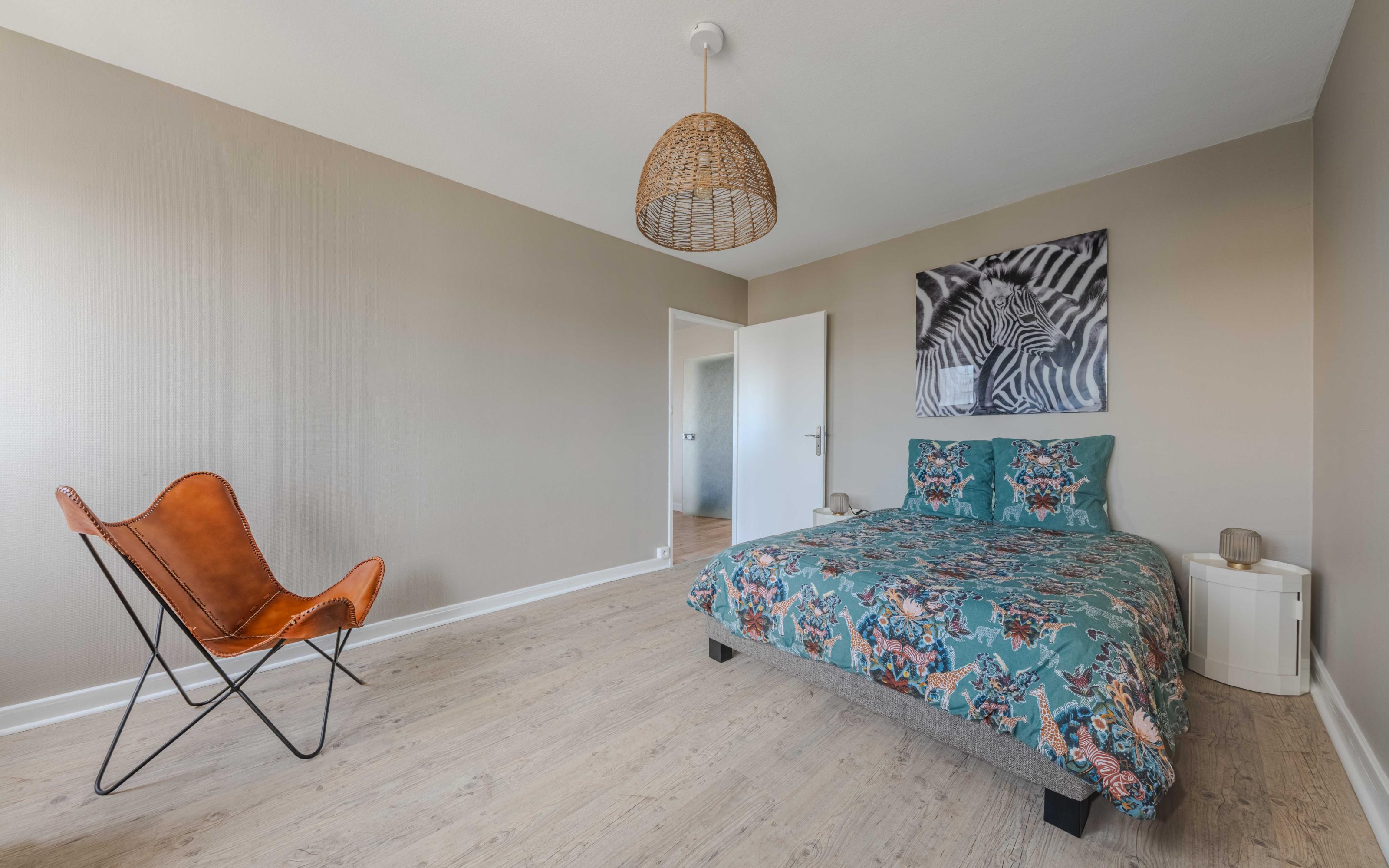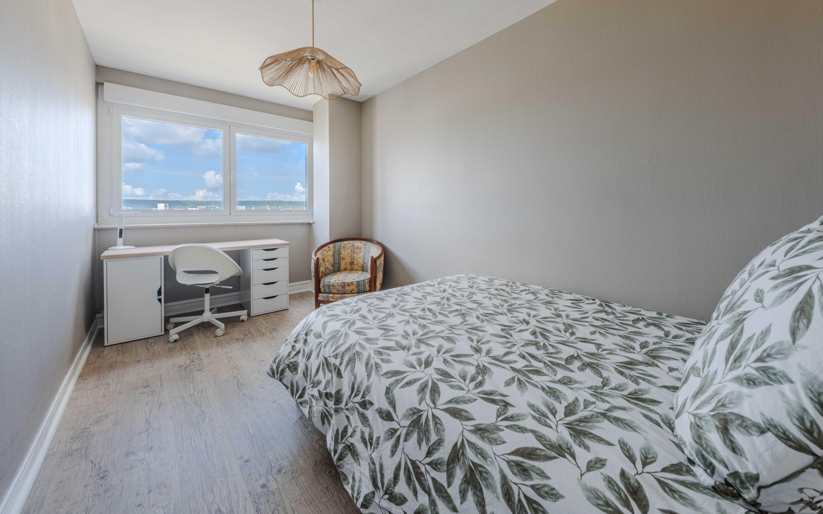 - 1 chambre spacieuse : Cette chambre est équipée d'un lit double, d'une grande armoire et d'un bureau, offrant un espace idéal pour se reposer et travailler.